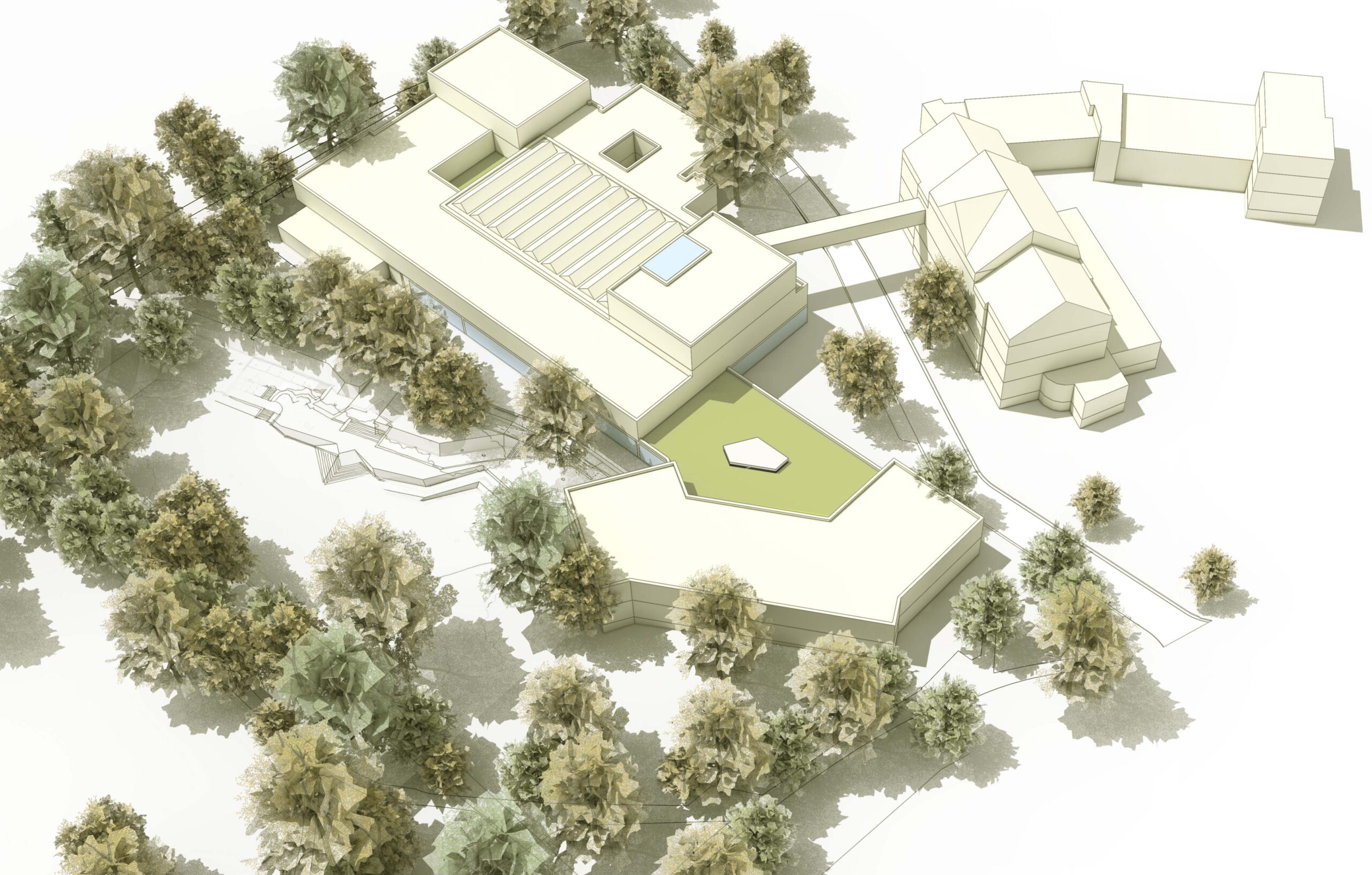 Der Hauptstandort der IGS Linden in Hannover soll umfassend saniert und zu einer inklusiven, barrierefreien und zeitgemäßen Ganztagsschule ausgebaut werden. Wir freuen uns, dass wir gemeinsam mit den Landschaftsarchitekten arbos landscape, nach erfolgreichem VgV-Verfahren, den Zuschlag für den Umbau erhalten haben. Unter laufendem Betrieb und begleitet von umfangreichen Partizipationsprozessen werden der Altbau, der Bestand aus den 70er Jahren und Neubauteile zu einem neuen Schulcampus verwoben. Entstehen soll eine kompakte „Schule der kurzen Wege“, die durch Kommunikationsflächen und Mehrfachnutzungen Synergien schafft – weiterhin eingebettet in einen großzügigen Schulhof mit charakteristischem Baumbestand.