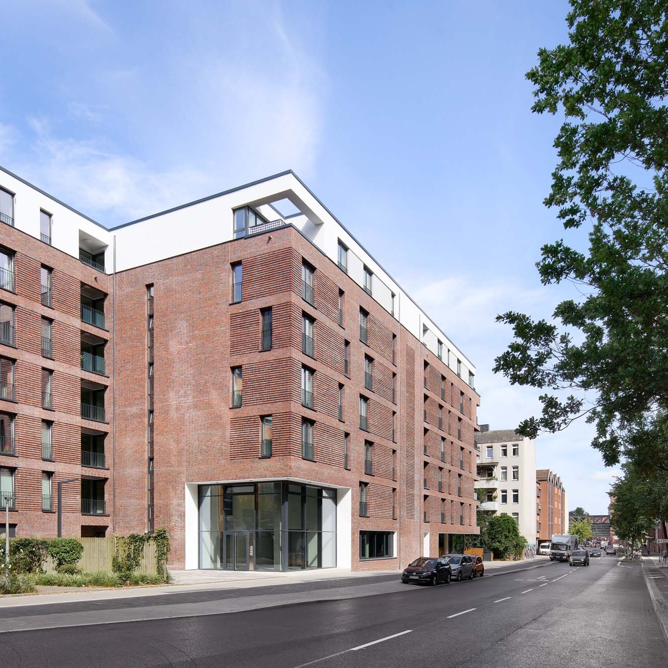 Unser Entwurf für ein neues Wohngebäude definiert die Quartiersecke Holtenauer Straße/Lornsenstraße in der Tradition der gründerzeitlichen Stadt mit einem kräftigen, überhöhten Baukörper.